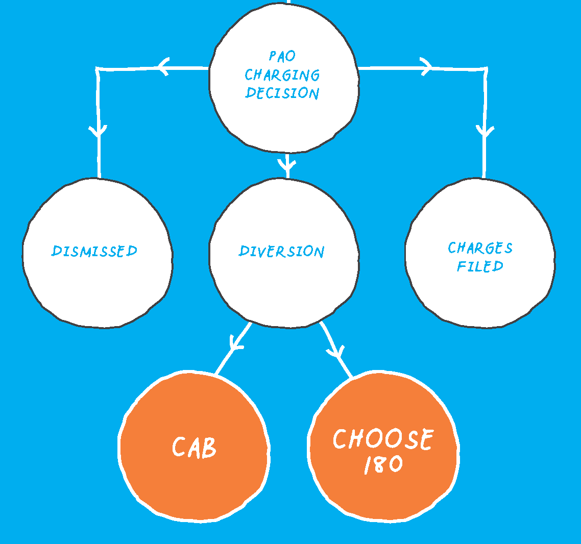 - Choose 180: This pre-filing juvenile diversion program teaches youth the skills necessary to avoid entering the juvenile legal system by reconnecting them with their community. Learn more about Choose 180 on the blog.